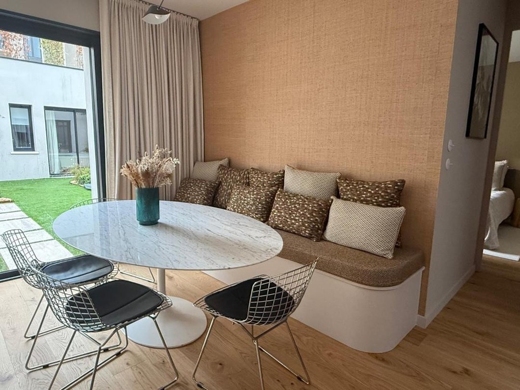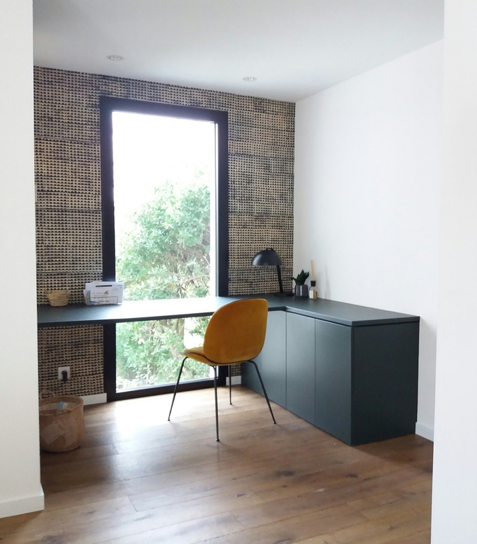 Aménagement d'un plateau de 89m², en appartement T3 avec jardin. Le logement se situe au rez-de-chaussée d'une petite copropriété.
